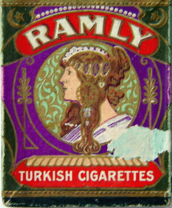 There is also a third style of Ramly pack as shown to me by Scott Brockelman. This third style is a multi-colored pack with purple/violet being the predominant color on the front of the box. This Ramly box, however, is for plain tips style cigarettes. It measures smaller than other Ramly boxes and too small to have contained T204s so therefore would not have been used for the distribution of the set.