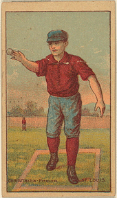 Produced in 1887 by D. Buchner & Company of New York and inserted into Gold Coin brand chewing tobacco, this unnumbered set contains both baseball and non-baseball subjects.