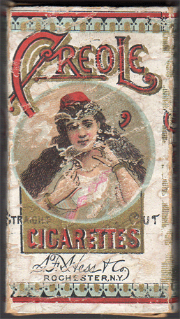 Baseball cards were packaged inside 10 count slide & shell boxes of Creole Cigarettes. Creole cigarette boxes are extremely scarce and demand for the boxes is high due to both the rarity and aesthetics of the packaging.