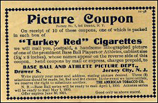 these premiums were redeemable by mailing in 10 coupons from 10-count clam shell boxes of Turkey Reds Cigarettes